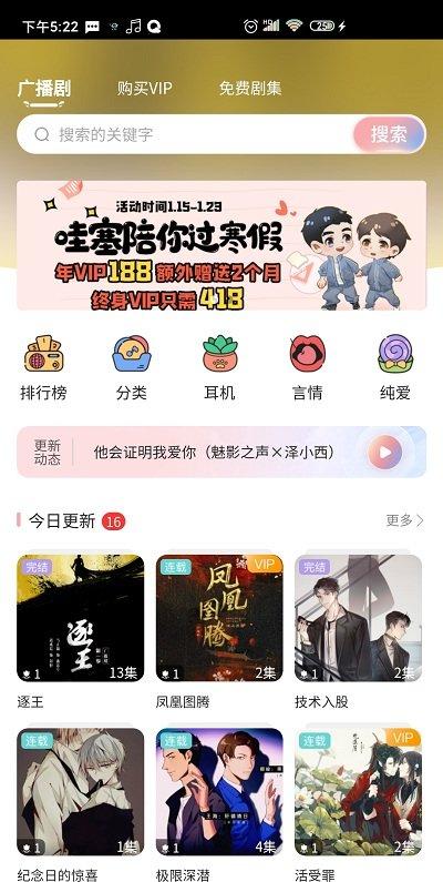 哇塞fm安卓是一款非常好用的广播剧平台软件,海量的小说资源能够满足用户的所有需求。