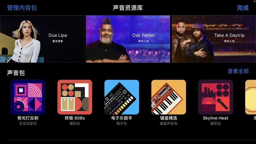 1、使用声音库下载免费的GarageBand乐器、即兴演奏和声音包。