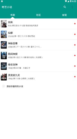 奇艺小说app是一款以绿色阅读为核心的精品掌上阅读软件!在奇艺小说app中所有的书籍都是绿色且免费的!并且无论你喜欢那种类型的小说,都可以在这里找到适合你的小说!!喜欢阅读的朋友不要错过了。