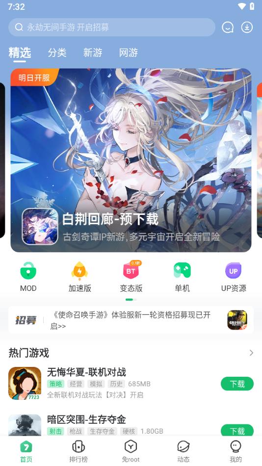 游戏直播:内设直播专区,用户可观摩高手直播,学习技巧,亦可直播自身游戏历程。