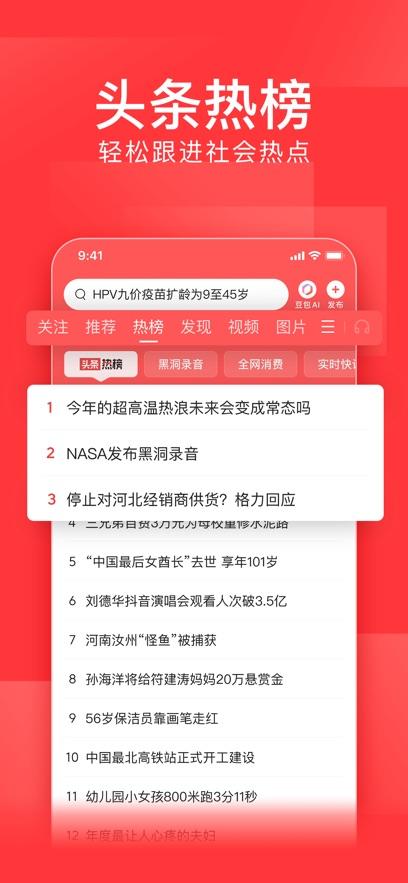 今日头条旧版本结合智能技术,根据用户爱好和阅读历史实时推送相关资讯。用户可对新闻发表评论、点赞、分享,促进热点话题讨论。