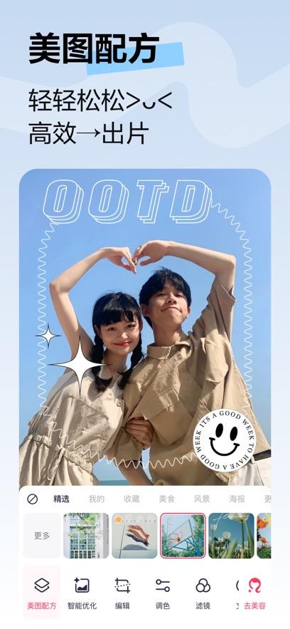 美图秀秀最新版这是一个集社交和修图为一体的网站,它将来自于各个领域的摄影师聚集在了网上,每个人都可以将自己喜爱的照片上传到网上,也可以对照片进行修图和剪辑,这款应用非常的强大,而且是免费的,它会一直保持着最新的素材,让你可以轻而易举地拍出各种各样的电影。