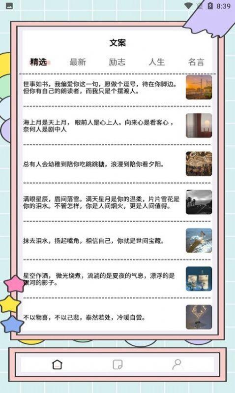 设置你喜欢的文字类型,每天都会为你推荐对应的。