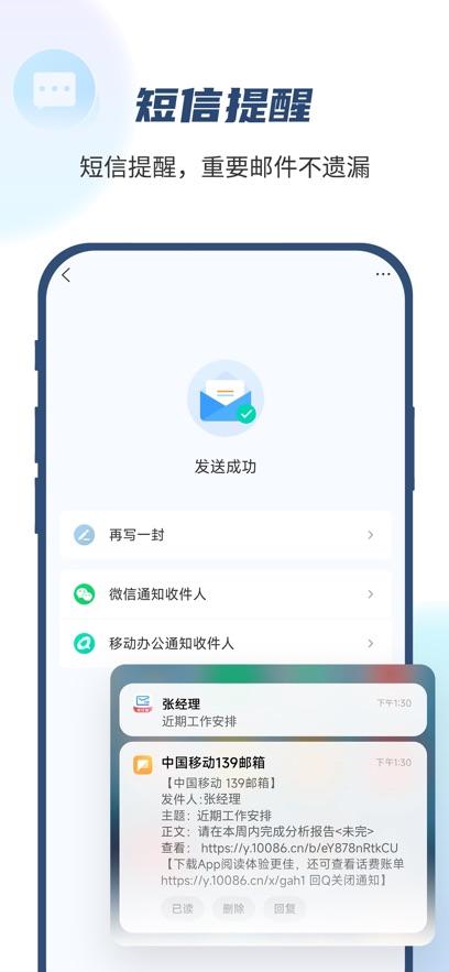 邮件提醒:新邮件实时推送,重要邮件绝不遗漏,还可以根据需要自定义提醒设置。