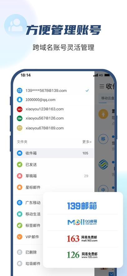 139邮箱最新版可以在同一应用上可同时管理众多139邮箱账户,切换随心所欲。为您提供海量邮箱空间,满足您长时间保存邮件的需求。