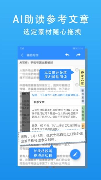AI助读参考文章功能,允许您随意拖曳选取所需素材,成功解决内容撰写难题。