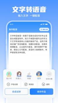 文字转语音超级配音是一款专业实用的手机语音转文字工具软件,这款软件内含众多不同类型的语音样本,用户输入文字文本并选择自己喜欢的语音,一键自动转换,操作起来也方便快捷,需要的朋友就快来下载文字转语音超级配音体验吧!