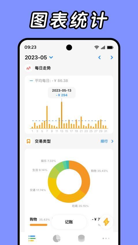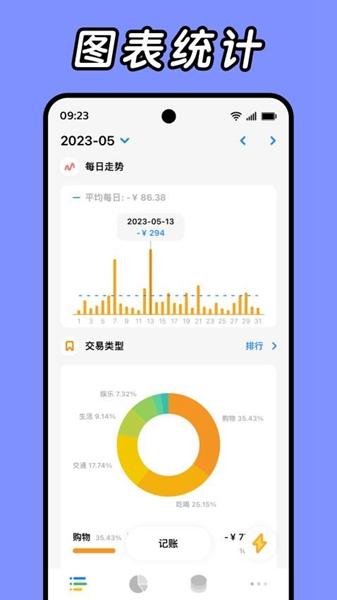 图表统计一览无余:借助软件的图表统计功能,您将轻松掌握各类图表内容,洞悉财务状况,日常记账操作变得如此轻松,您可以更加快捷地记录更多账单资料。