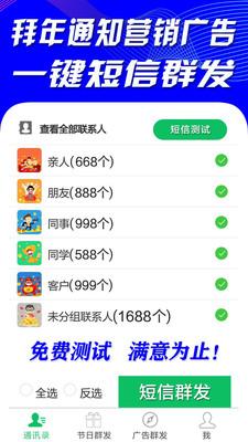 短信群发app是一款群发信息工具,软件将能够更快速、更方便地发送消息给很多用户,不需要逐一复制消息发送真是生活中的好帮手。有需要的小伙伴快来下载吧!