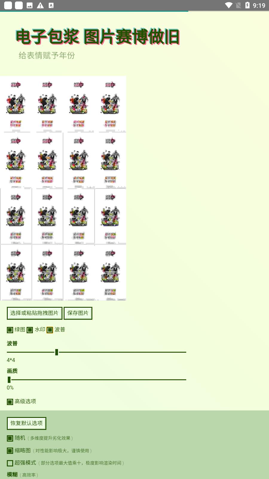 电子包浆生成器手机版是一款功能强大的图片处理软件,可以对图片进行做旧处理,变成一张老照片,非常的有趣。