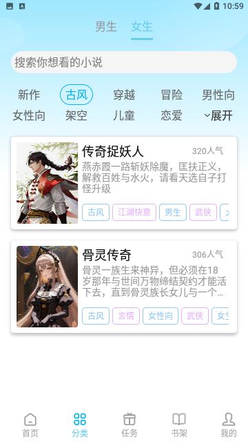 3、很多不同风格的男频女频小说资源在这里都是可以找到的,更好的进行选择