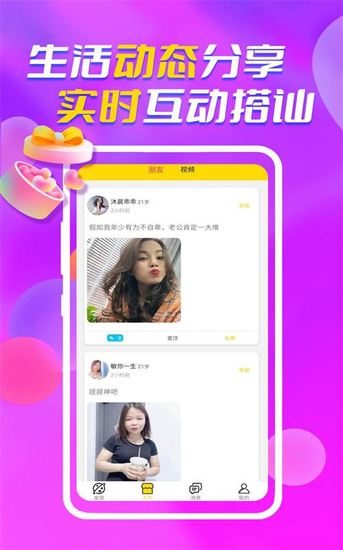 1、私信聊天:与附近人建立一对一聊天,全面了解另一方;