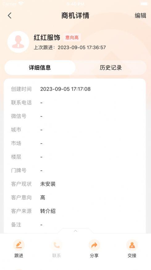 2、此外,跟客易app还提供了销售人员之间的沟通和协作。