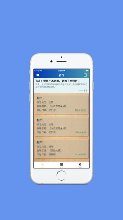 3、一款具有特色的书法学习练习运用,为众多书法发烧友提供一个造就和学习的尺度空间。
