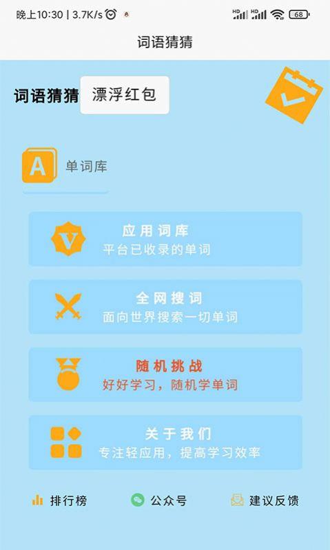 词句猜猜app是一款英文单词学习培训APP,主要是通过猜谜语的方式协助用户学英语单词。选用猜谜语的方式,将英文单词的学习过程变得更加有趣与互动。用户应该根据给的提醒,猜想总体目标单词的拼读。这类方式可以激发用户的学习兴趣驱动力,让学习不会再枯燥乏味。