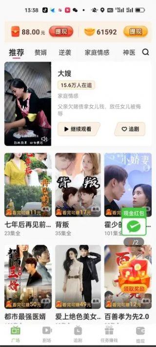 1. 用户能够观看短剧、刷短剧等方式获得不同类型的奖励,包含现钱、抵用券等形式;