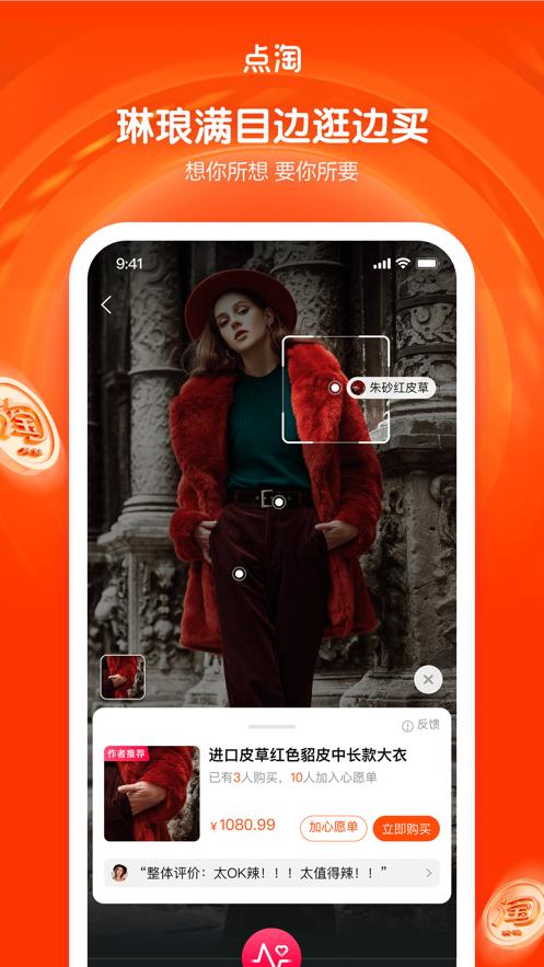 v2.34.181) 点淘已刷新,新体验、新福利、新玩法!还有新人礼物,你一份,我一份,还有其他新活动正在进行中!点击这里,更多惊喜等你来发现!快来下载鸭子吧! 2)主播福利升级。大额红包补贴不断。邀请好友即可获得最高1000元红包。购物充满了便宜货。快来买鸭子吧! 3)看短视频寻找感兴趣的商品,还有超值优惠,快来种草鸭吧! 4)王氏好物广场上线啦~热门折扣一览。如果你不知道买什么,推荐的商品都安排好了。快来看看吧!