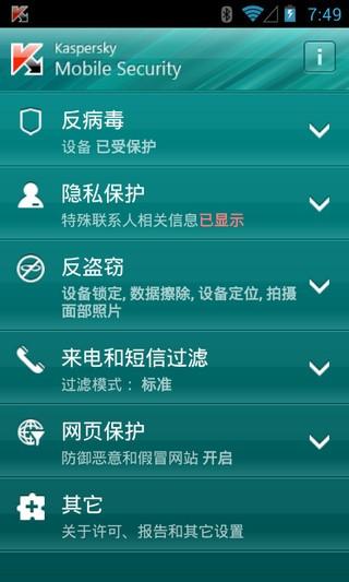 卡巴斯基手机版免费版是一个免费的防病毒安全解决方案。该软件可以保护每个人的手机安全,优化每个人的上网环境,享受绿色健康的上网体验。防止来自互联网攻击、恶意程序和垃圾短信的威胁,解决您的智能手机安全忧虑,保护您的Android 设备、数据和身份。