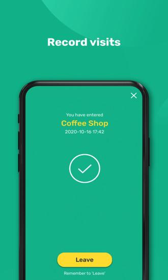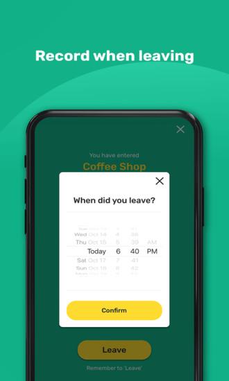 2. 当您离开时,在App中点击“离开”,相关出行记录将被加密存储在您的移动设备中。