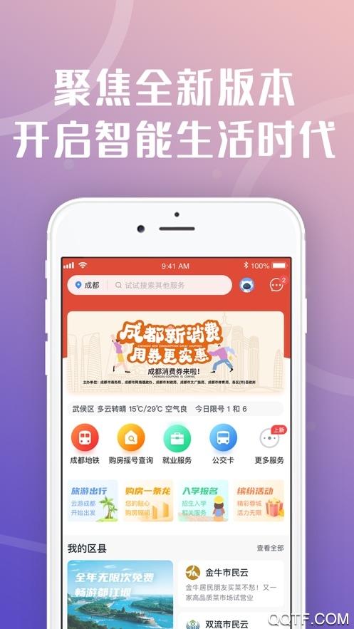 4、天府公民云App旨在打造一站式“互联网+公民”服务,集养老服务、婚育婴幼儿、文化教育、民生保障、交通旅游、医疗健康、环境卫生等九大服务于一体。气象、家庭生活、就业创业等方方面面都包含在平台服务中。
