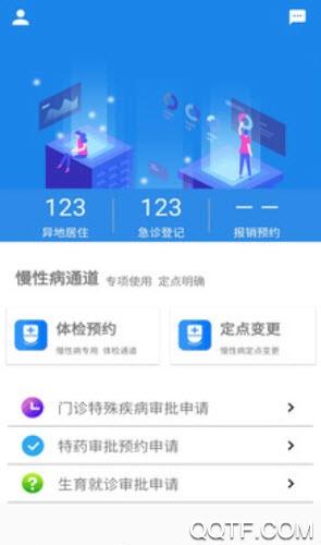第三页为“福利功能区”,包括门诊特病、门诊慢病、特药治疗申请预约、门诊慢病指定换药服务;