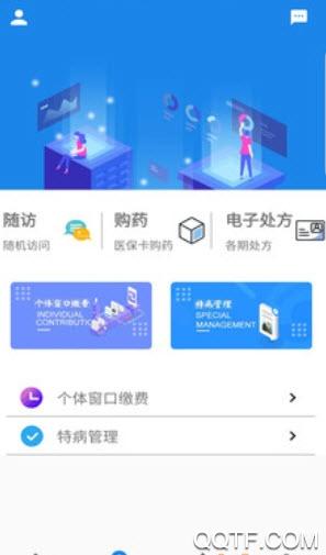 第二页为“缴费功能区”,包括灵活就业缴费、跨诊所缴费、慢病及专科药品管理等;