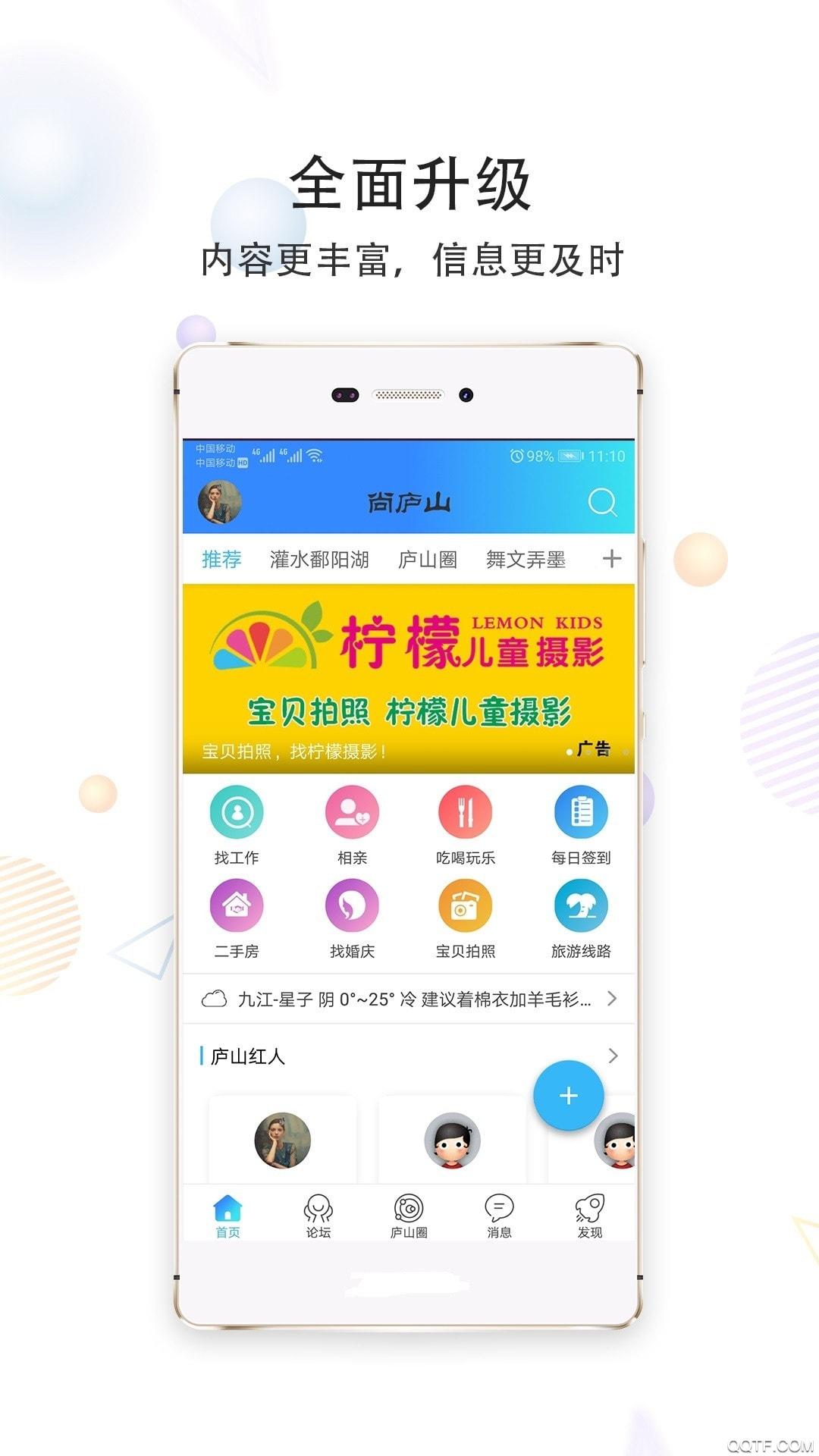 尚庐山app是专门为庐山人打造的生活服务应用和移动信息平台。电话尚庐山app,您可以查询房屋租售信息、了解当地企业招聘情况、支付生活费等。