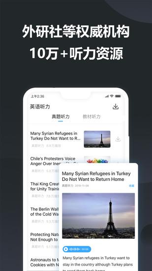 包含高中、四六级、考研、雅思、托福多重身份,支持个性化定制,一键同步学习计划,听、说、读、写专项练习,智能单词记忆和记忆力提升。