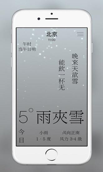 雨时安卓版是一款极简天气预报软件,可以为用户提供每天的天气情况、不同的天气情况以及对应的诗意古诗词。雨时app不仅提供每日天气温度,还提供风向、风速和未来天气状况。根据天气情况,它还会提醒您穿衣服的厚度。也非常方便简单。用户只需添加当地天气即可查看天气。