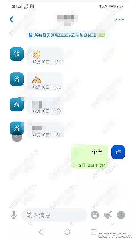 4. 默认密文:添加密文码字。对方需要输入码字才能查看聊天信息。