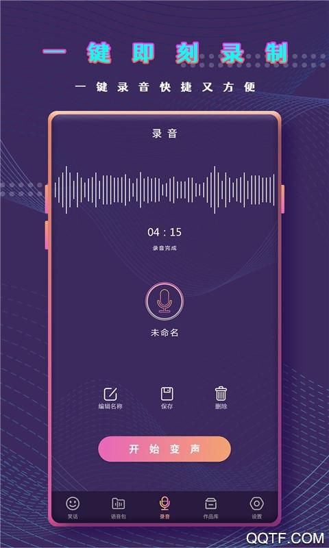 【一键录音,瞬间变声】点击录音功能,即可录制你的声音。我们会尽力为您提供尽可能接近原声的音质,让您免费保存声音并用于免费变声!