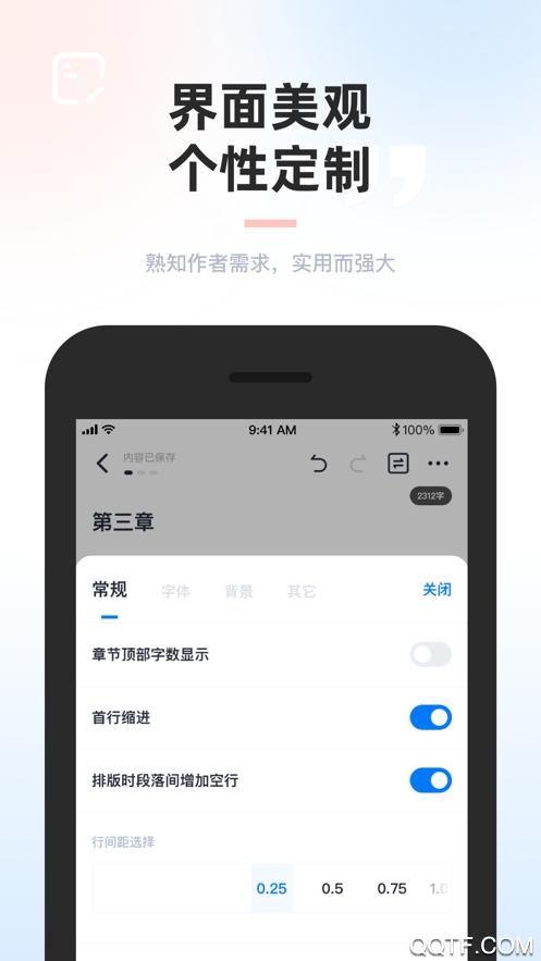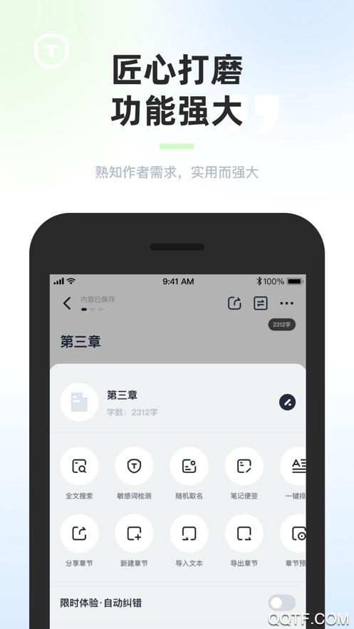 1.有效治疗拖延症,具有时间和字数两种锁定模式,让您专心写作,心无旁骛。