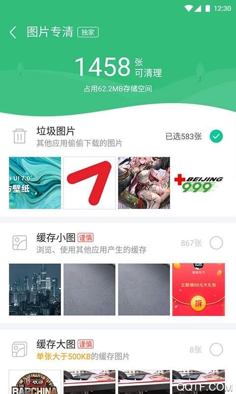 3.智能清理微信、QQ聊天视频、图片、缓存垃圾等;