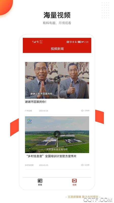 新农村+app是中报头条(北京)新媒体科技有限公司开发的,该软件主要聚焦三农领域,助力乡村振兴。特别是近年来,国家脱贫攻坚工作取得阶段性成果,新农村发展日益成为国家关注的领域。各大新闻媒体也纷纷将目光投向新农村发展。目前,全民脱贫的目标已经实现。下一步新农村如何发展、如何振兴农村经济也成为广大农民关注的焦点。这些担忧都可以在新农村+APP上得到解答。海量资讯、新闻、政策都在这里,欢迎下载体验!新农村App是农村信息移动服务平台。该平台拥有丰富的新闻和视频内容,可以帮助更好地引导和服务农村群众。欢迎有需要的朋友下载使用。