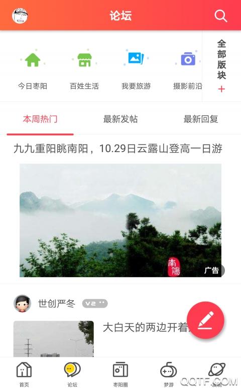 这是一个为枣阳当地人提供信息服务的平台。涵盖多种服务类型,主要有资讯、生活、美食、资讯、商圈、租房、房产、装修、汽车、婚庆、亲子模块等多个模块,一站式提供优质服务。用户可以选择自行查看,更方便地了解自己需要了解的信息。枣阳论坛app包含本地论坛服务。用户可以选择自己查看许多主题。他们还可以在线编辑帖子并发布信息以与本地用户共享。包含圈子服务,用户可以随时浏览了解网友更新的圈子动态,并可以在线点赞和评论。该应用包含众多便捷服务,您可以自行选择和操作,享受高品质美好生活。枣阳论坛是枣阳博行网络有限公司旗下网站,是一个集消费体验、生活资讯、人脉关系于一体的城市社区。枣阳论坛是一个提供快捷、贴心、有效的城市生活服务的新媒体平台和网上家园。