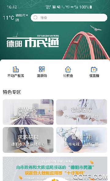 德阳市民通讯APP由市政务服务和大数据管理局主办,各政府机关、企事业单位共同参与。通过实名认证、大数据分析、实时推送等手段,实现政务服务从“广播式”到“精准化、个性化”的跨越式发展,为公民和企业提供网上公证、政务服务围绕生活场景和提供事项分类关联医疗健康、智慧金融、社保、征信、文化教育、养老救助、创业就业、交通、旅游休闲等公共服务和生活服务为市民打造贴身智能生活管家。