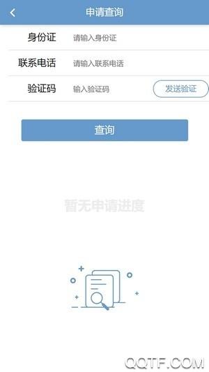 2.申请查询:点击申请查询,输入申请人身份证和手机号码。点击发送验证码,输入收到的手机验证码。点击“查询”即可查看申请进度。