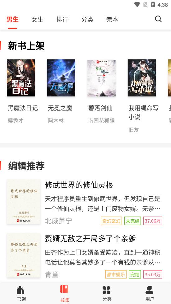 3、海量书库:各种推荐、分类书库、排行榜,让您找到各种独家网络作品和各种热门畅销书或您喜欢的书。