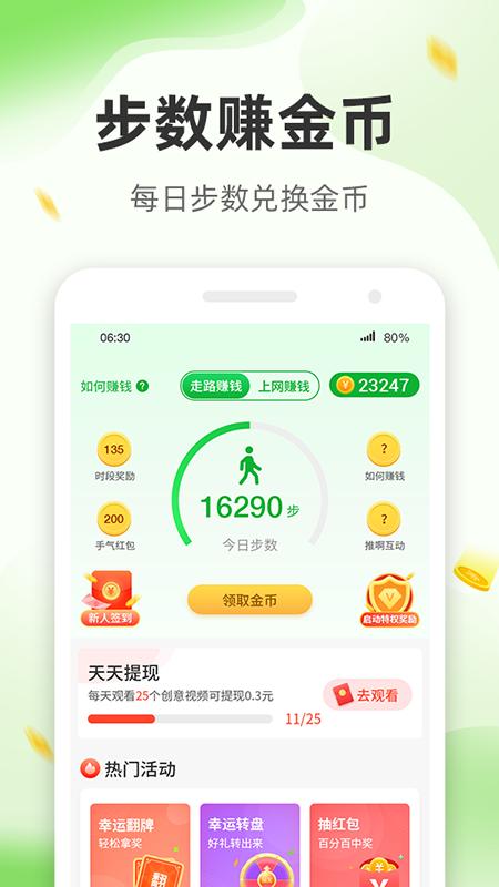 计步目标定制,走完即可兑换金币,轻松赚钱,健康快乐轻松。