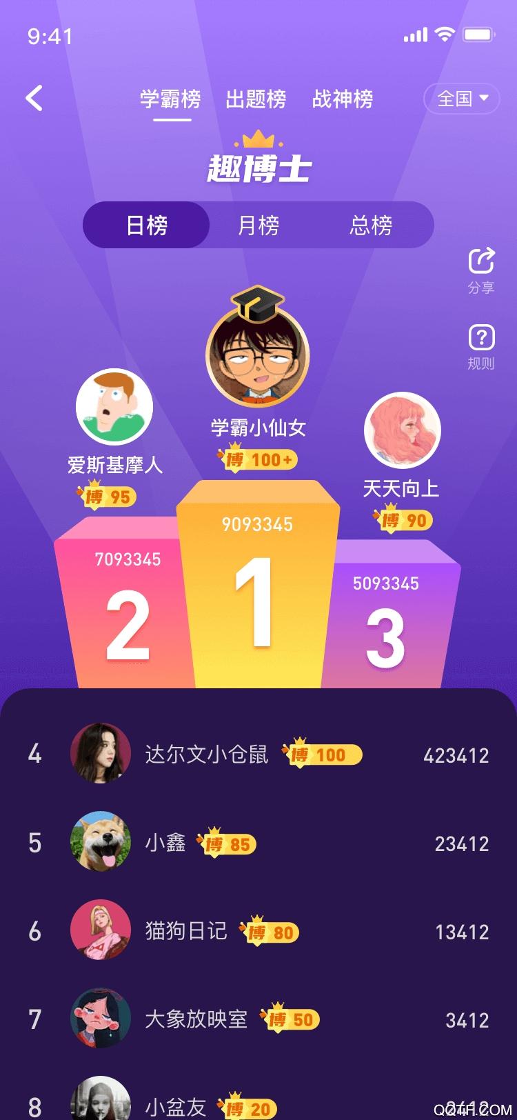 趣博士app手机版是一款答题赚钱软件。这里题库很多,涵盖的话题很广泛,比如科技、历史、文学等,答对问题就可以赚钱。您还可以查看自己的排名列表,看看您的排名如何。第一,你还可以在这里交朋友。是一个非常好的通过答疑赚钱、交友的平台。让我们来看看。