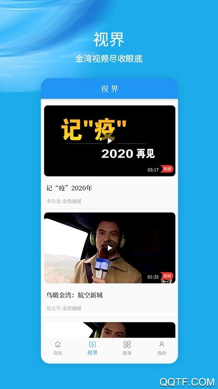 1、金湾融媒体APP设有资讯、视野、服务等内容版块,可以帮助更好地引导和服务金湾区。