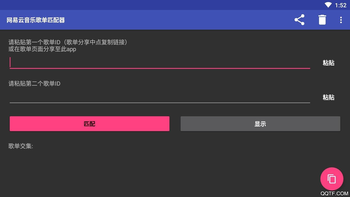 2、请粘贴播放列表ID(分享播放列表时点击复制链接)或在播放列表页面分享到本应用;