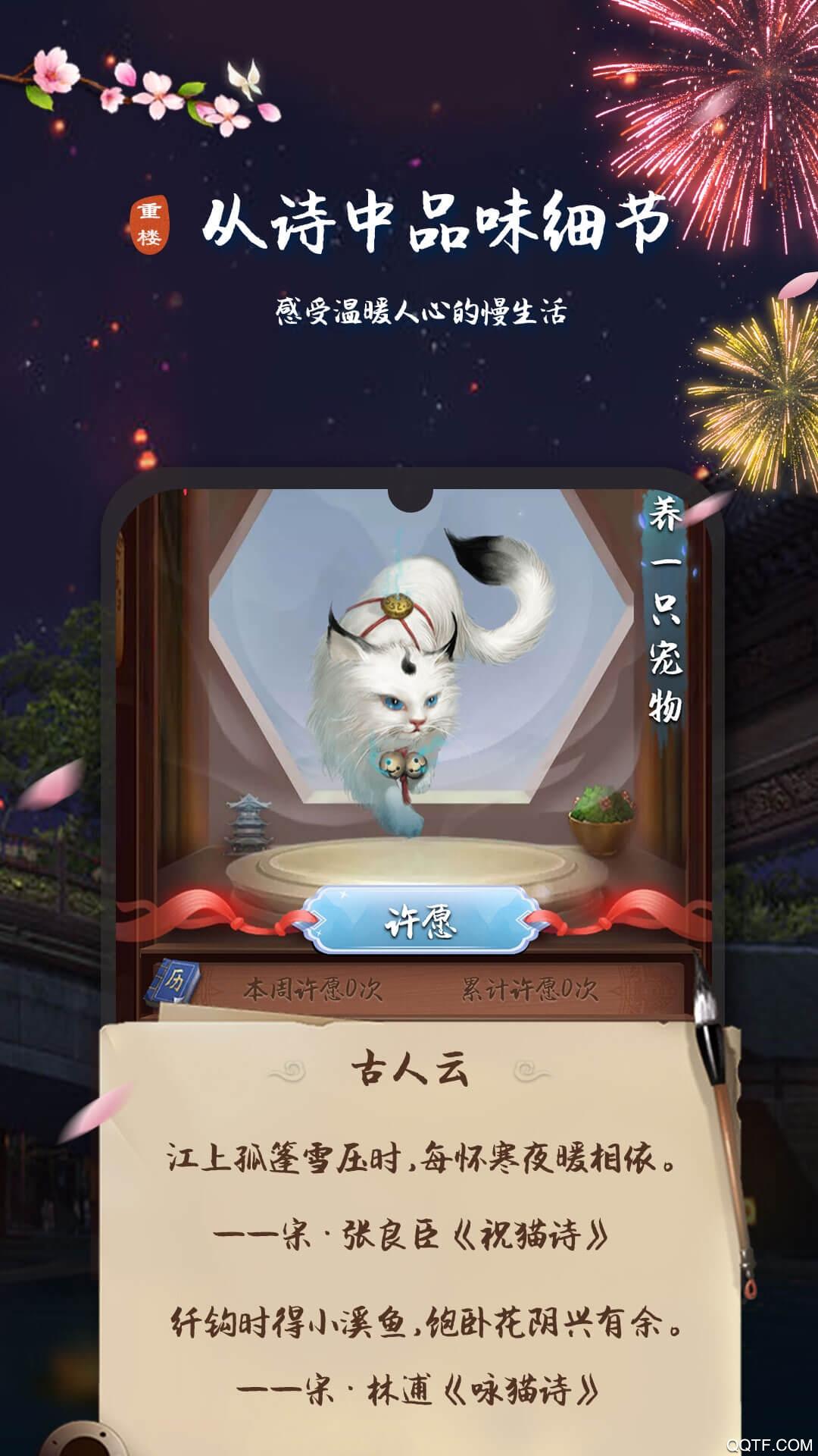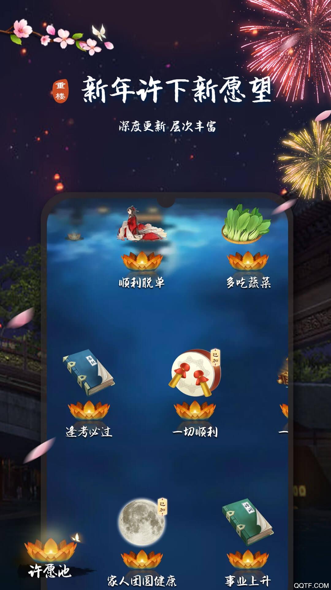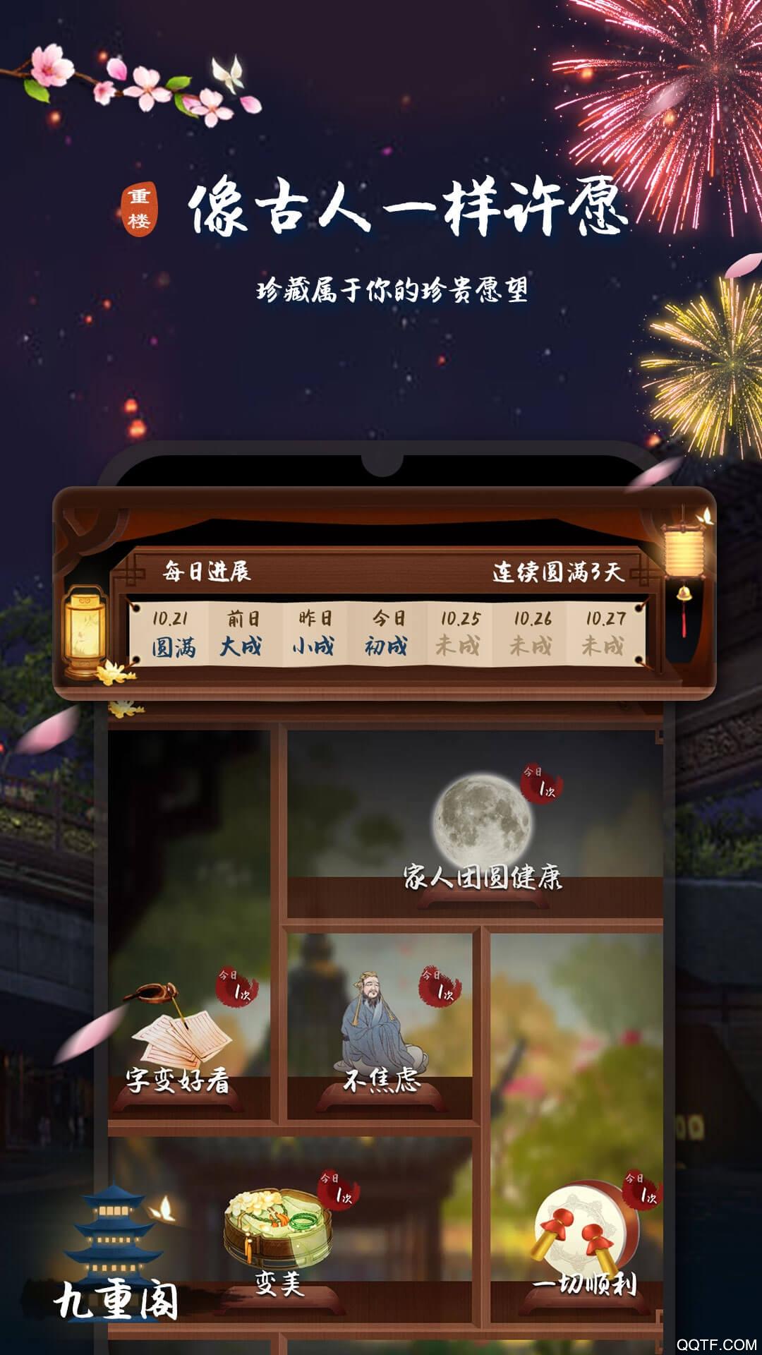 重楼许愿App,一款精美的古风许愿软件,可以记录愿望、设定目标、坚持签到,轻松实现个人愿望。快来宠楼app许下个人愿望,记录你的个人愿望,让你的梦想成真。一款有趣的古风许愿定制任务签到社区软件。重楼的界面古老而优雅。用户可以在重楼许愿App上许愿。如果他们累计愿望,重楼App会给你惊喜礼物。