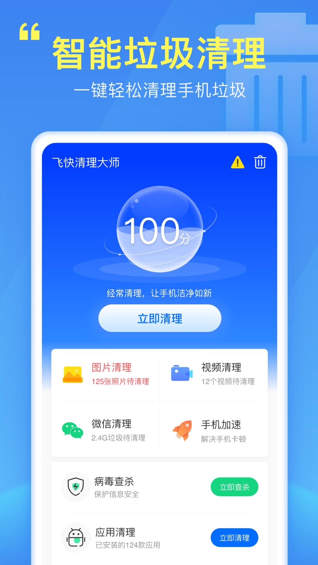 飞快清理大师app安卓版是一款专业的手机垃圾清理软件。软件功能非常强大,各种常用功能都有。对于手机逐渐变慢的用户来说,它总能帮助我们自动清理缓存垃圾并释放。手机存储空间还可以用来检查堵塞情况,监控手机病毒,保证我们手机的安全。欢迎大家从本站下载。