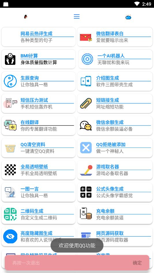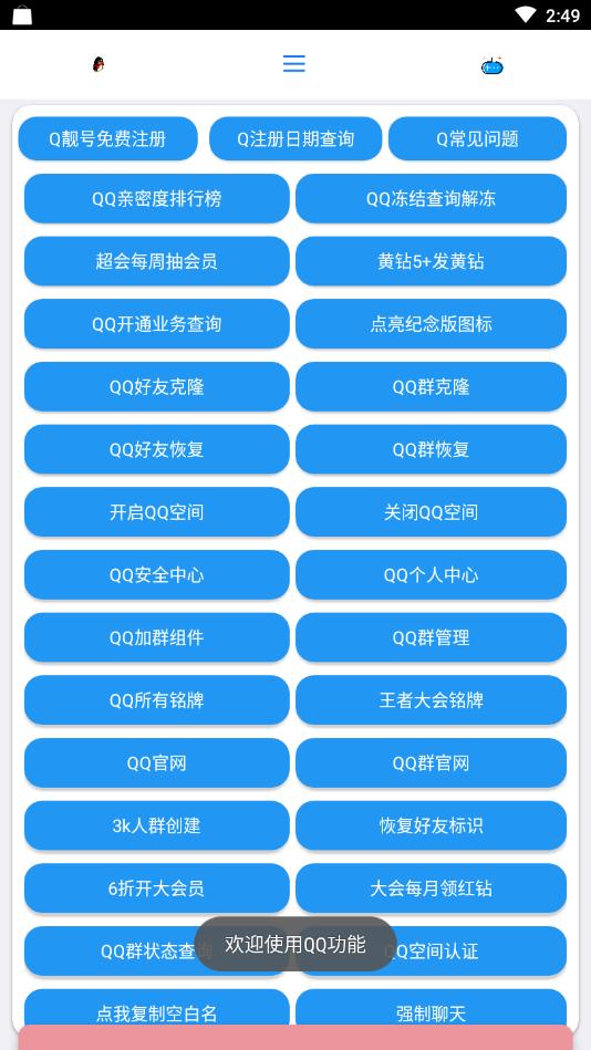 2.随机添加QQ好友+微信钱包礼包+QQ绝版泡泡VIP版+QQ小号生成+手机号码查询等功能的酷盒