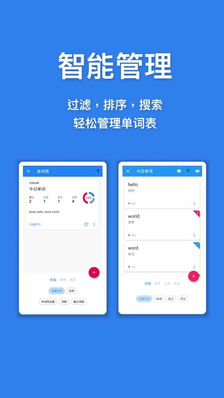 2.可以在线智能管理单词列表,随意过滤、排序、搜索等,清晰查看单词信息;