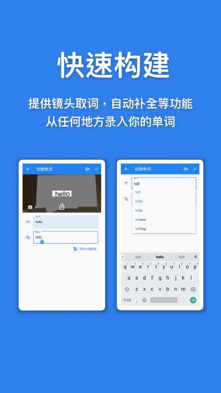 1.使用相机单词和自动完成功能,帮助您快速输入书籍、电影字幕和任何地方的单词,并建立单词列表