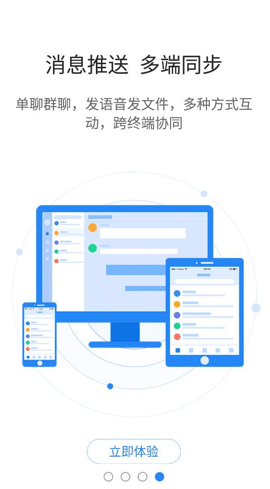 单聊和群聊,发送语音和文件,多种方式交互,跨终端协作