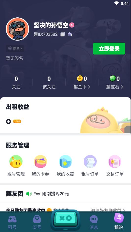 0元账号租用app,游戏玩家必备的游戏账号租用和账号交易平台。它汇聚了大量优质游戏账号,通过共享账号赚钱,体验更好的游戏体验,为游戏玩家带来更多便利。