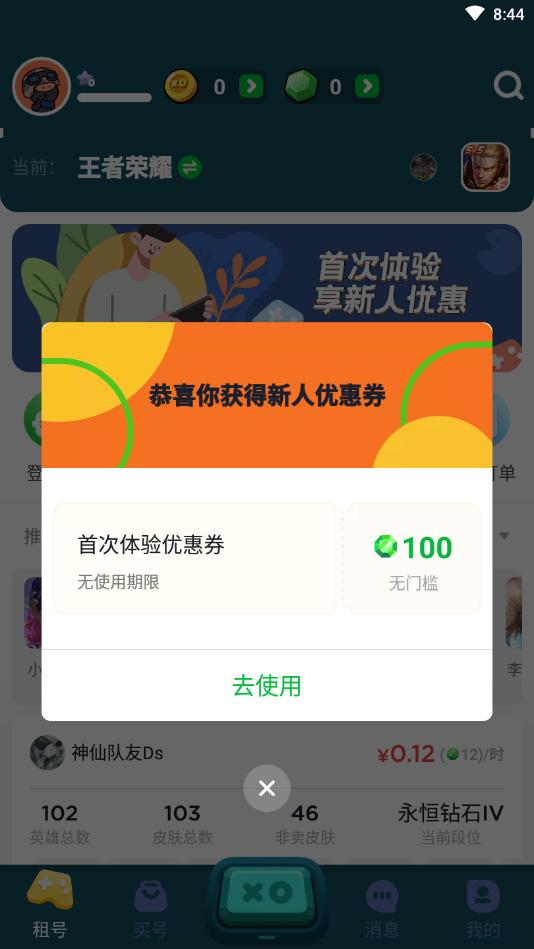 0元租号app手机版是一款真正免费的账号租赁软件。网上每天都有大量热门游戏的账号被出租。王者荣耀、英雄联盟、和平精英等游戏重氪金账号免费租用,让您体验游戏。当老板赚钱的乐趣,使用各种限定皮肤道具玩游戏,一键托管安全可靠,需要的就下载吧。